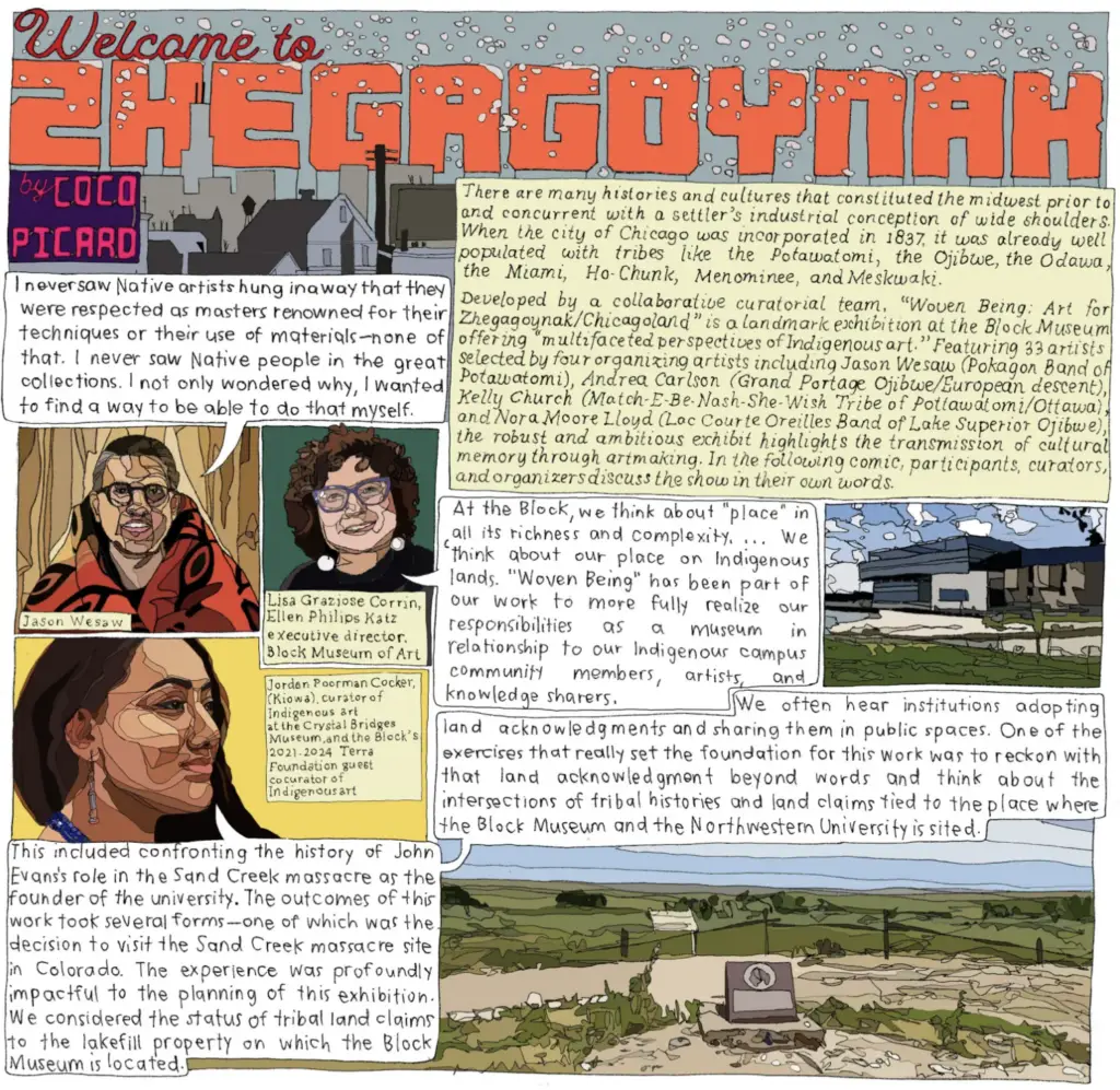 A comic by Coco Picard highlights the perspectives of the collaborators involved in “Woven Being.”