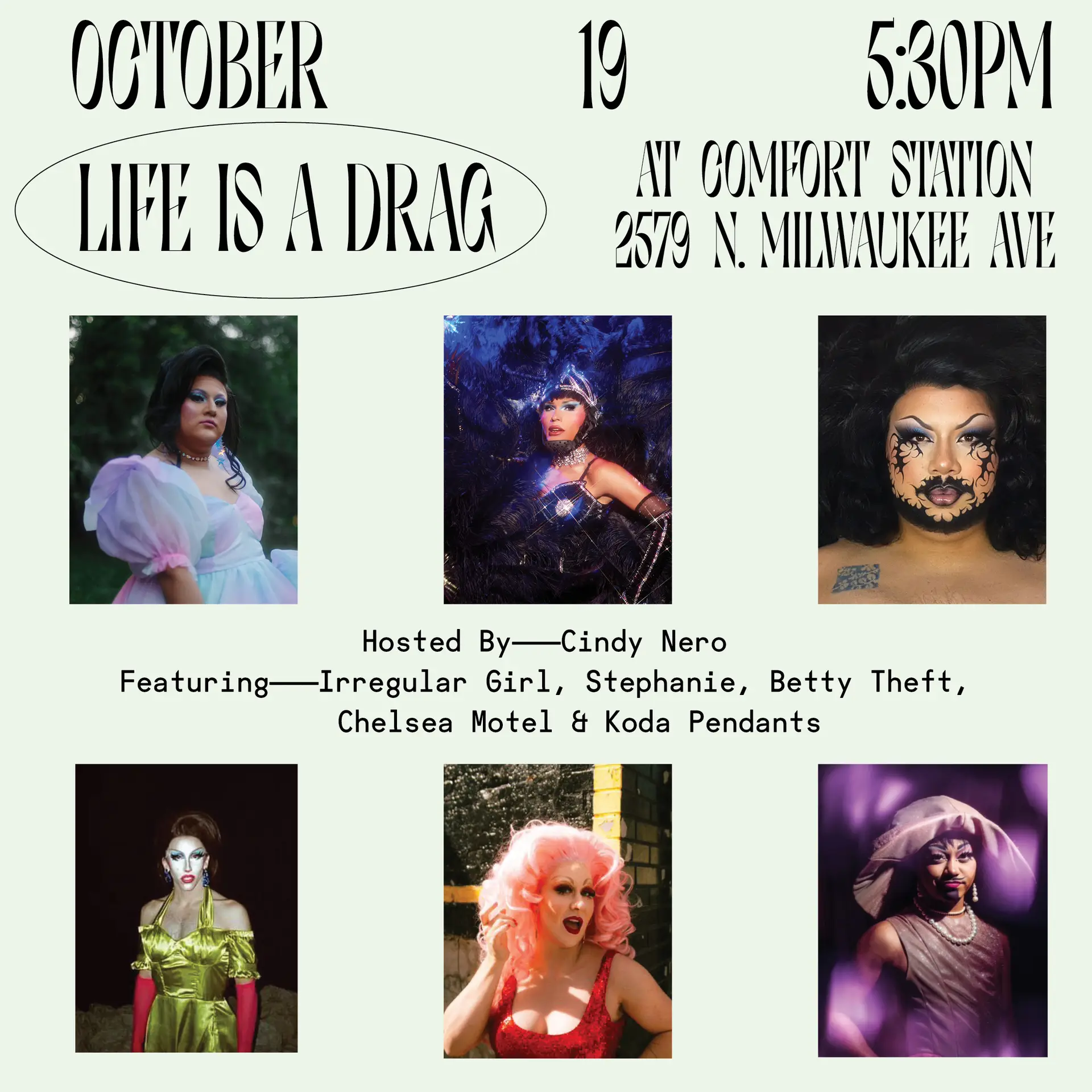 PerformanceWorkshop July 27, 2024 @ 6:00 pm - 9:00 pm Life is a Drag Event Details Comfort Station Logan Square West Side|North Side